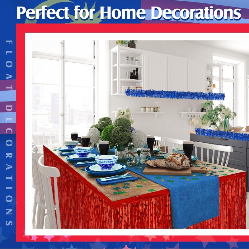 - Meet Your Decorating Needs: you will receive 4 pieces of Independence Day parade float party fringe table skirts and 6 pieces of blue twist Independence Day tinsel garlands, enough for your floats' decorative demands, and they will make your floats more eye catching and attractive