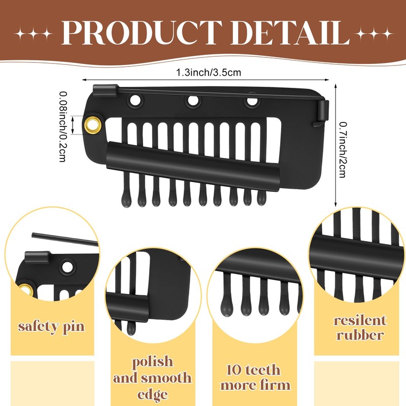 Crowye 20 Clips para Peluca de 10 Dientes Clips Chunni con Imperdibles Clip de Agarre Dupatta de Cabello Pinzas de Ajuste Planas Fuertes de Dupatta Clips de Extensión de Pelo para Mujer (Negro)