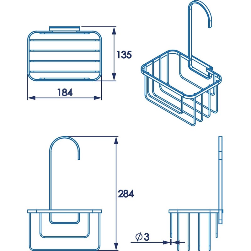 - Fits most standard riser rails and creates valuable additional storage space in the shower