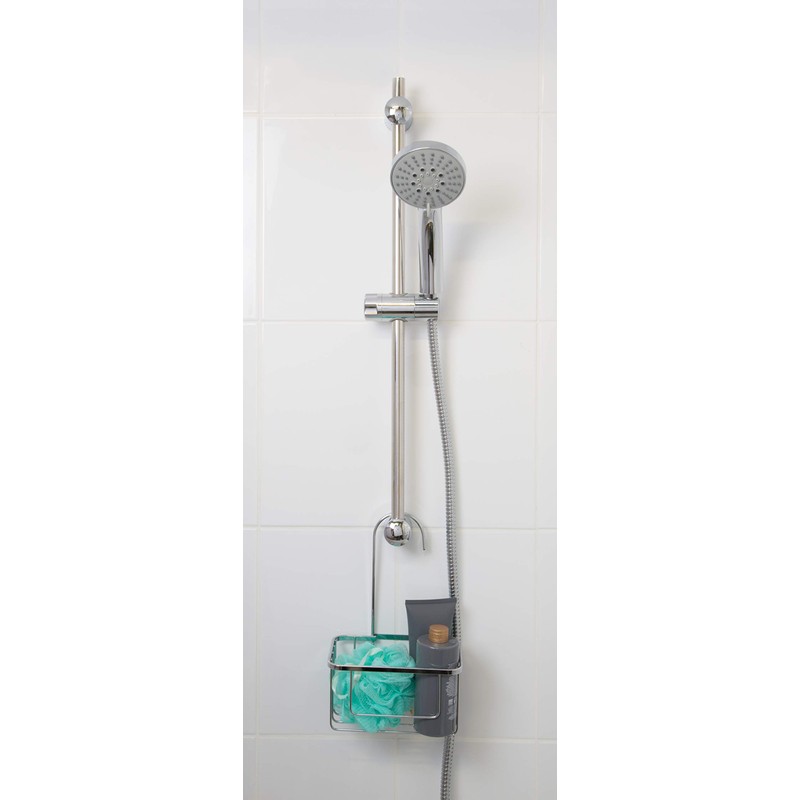 Croydex QM260441 Chrome Shower Riser Rail Hook Over Caddy Basket, 5 Year Rust Free Guarantee, Silver