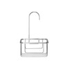 - Contemporary hook over shower caddy with self-adhesive pad to secure caddy in place