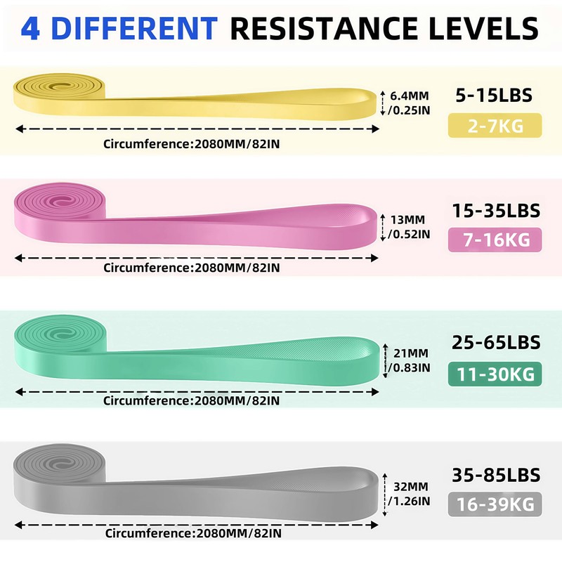 - 【Multipurpose Full Body Workout】The gym bands is perfect for men and women tone their arms,back,legs,and butt, chest,core, ABS and increase your body flexibility. These exercise bands is ideal for pull up assistance, adding resistances to press-up,speed training,bench press,squat,shoulder press etc.Our stretch bands also show their excellent performance in physical therapy,weight loss,injury rehabilitation, speed training and more