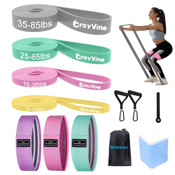 CroyVine Pull Up Bands Resistance Bands Set for Working Out,7 PC Long Exercise Bands & Fabric Booty Bands for Training Hip Thigh Glute Fitness,Home Workouts,Physical Therapy for Men Women
