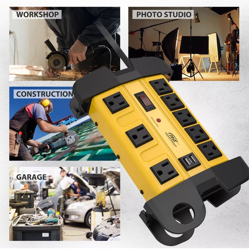 CRST 15FT Cord 8-Outlet Power Strip with USB (3.1A) with Surge ProtectorWall Mount - 2USB+6FT