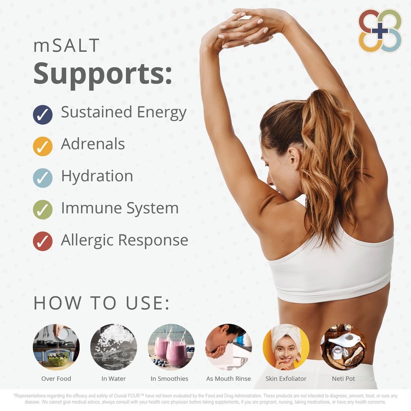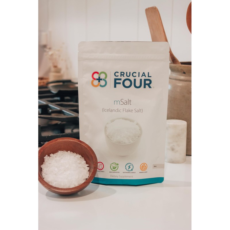 Crucial FOUR - mSalt (Icelandic Flake Salt) – Organic Flake Salt for Cooking/Baking – Unrefined, No Additives, Non-GMO, Kosher – Delicious Gourmet Salt Made From Clean Seawater – Eco-friendly – (16oz)