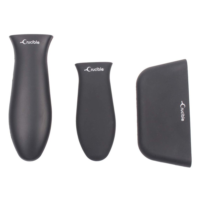 Crucible Cookware Silicone Hot Handle Holders 3-Pack Mixed (Black)