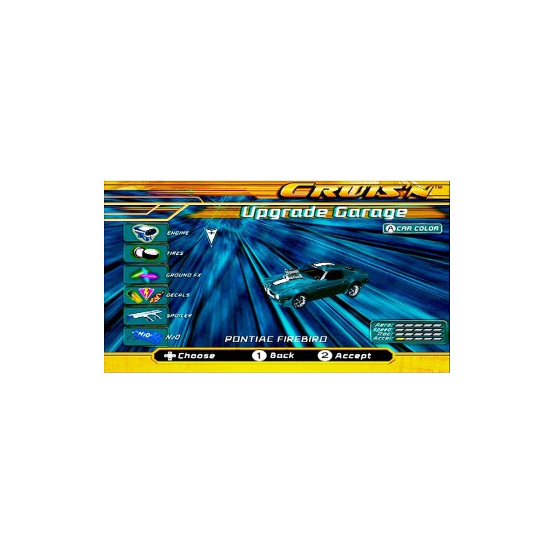 - Vehicle Custom Upgrades: Trick out your ride with custom gear! Spoilers, engines, neon, tires, body kits, turbo and boost kits can all be added to build the ultimate Cruis'n machine.