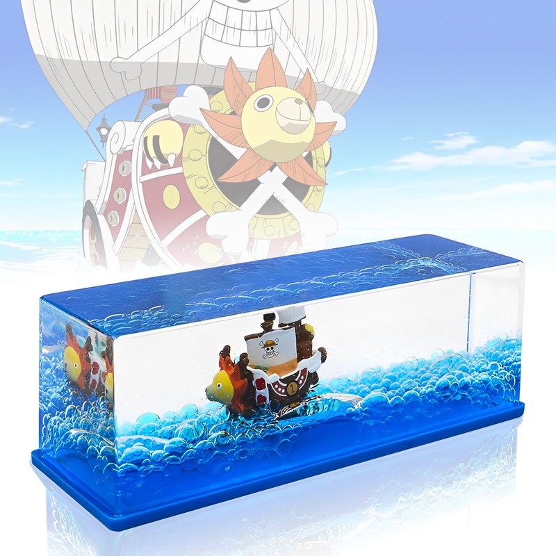 Cruise Ship Fluid Drift Bottle Thousand Sunny Cruise Ship Fluid Drift Bottle Unsinkable Boat in a Box Pirate Ship Decoration One Ship for Home Table Decoration Car Display Cases (Sunny)