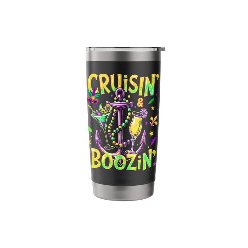 Cruisin & Boozin Cruise Time Mardi Gras Carnival Ship Party Stainless Steel Insulated Tumbler