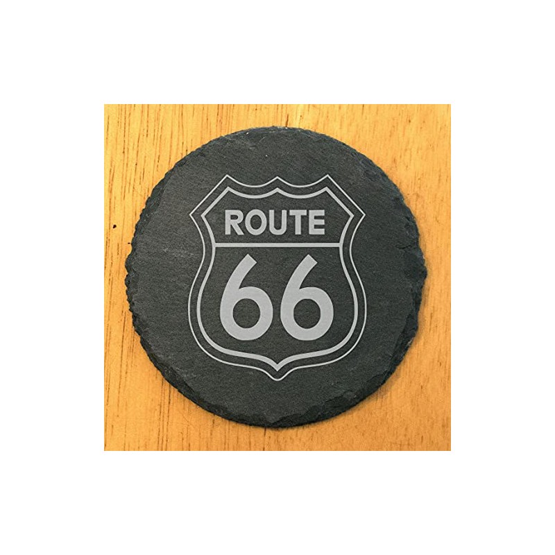 Take a nostalgic journey down America's Mother Road with these unique and vintage-inspired slate coasters, featuring the iconic Route 66 shield.