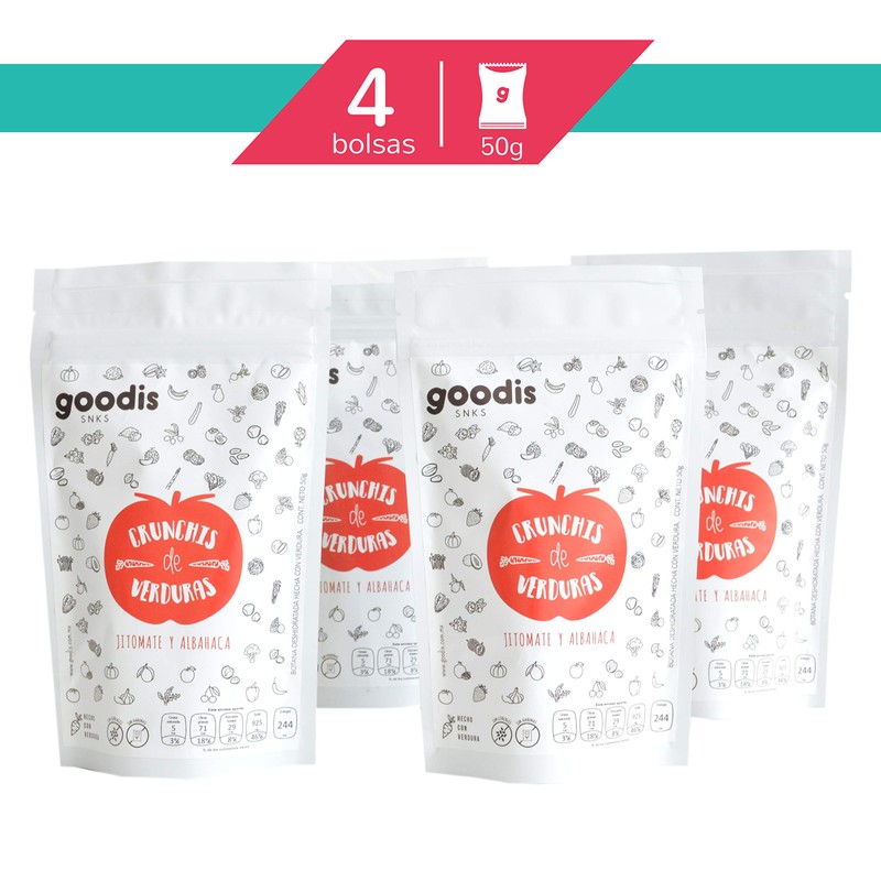 Crunchis de verduras de jitomate y albahaca - paquete de 4
