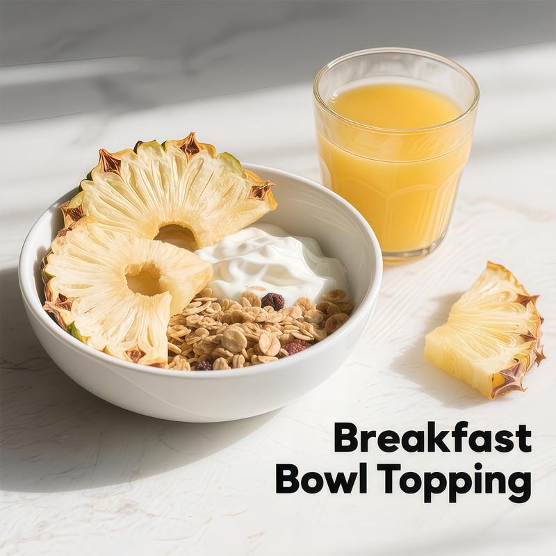 - Sunshine-Packed Freeze-Dried Pineapple Made from peak-season pineapples harvested at perfect ripeness, our freeze dried pineapple delivers: Intense tropical flavor Preserved natural nutrients Crispy texture (no chewy dried pineapple) 100% pure fruit