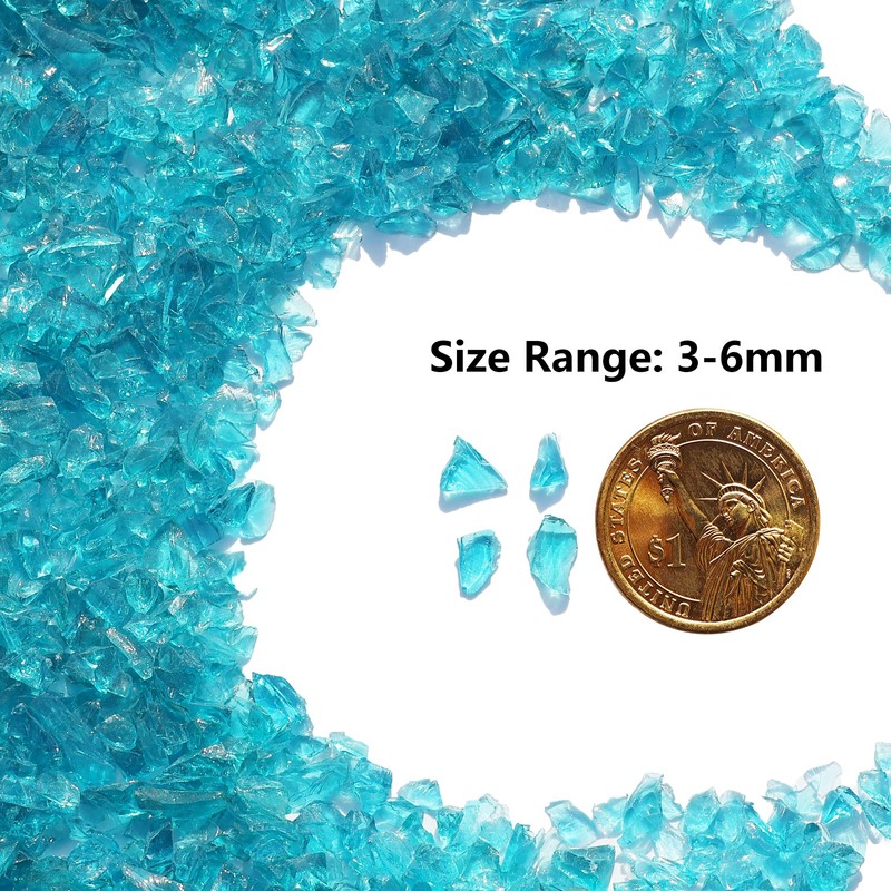- Premium Quality & Versatile: Made from high-quality, heat-resistant crushed glass, our glass pieces (3-6mm in size) are ideal for a variety of uses, including resin art, vase fillers, tabletop fire pits, aquarium decor, and more. The textured, jagged surface provides a more natural and rustic appearance, adding character to any project.