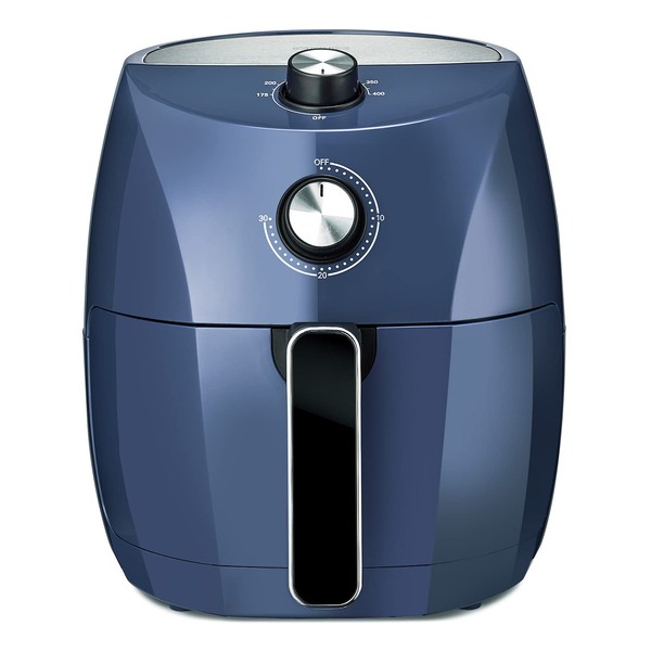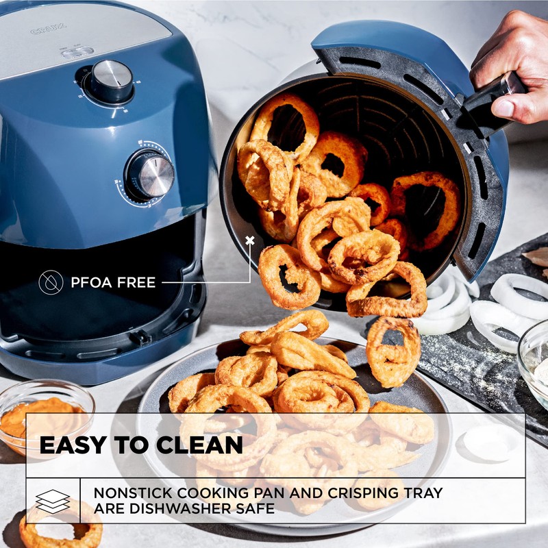 Crux 3.7QT Manual Air Fryer, Faster Pre-Heat, No-Oil Frying, Fast Healthy Evenly Cooked Meal Every Time, Dishwasher Safe Non Stick Pan and Crisping Tray for Easy Clean Up, Stainless Steel/Blue