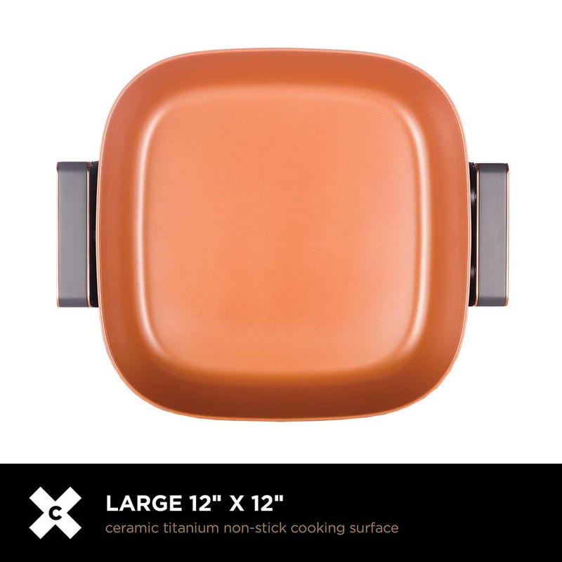 - COOK FOR A CROWD: CRUX electric fry pan features a non-stick copper ceramic coating that is ten times more durable than others and metal utensils safe. The large 12" x 12" surface lets you cook up a storm - perfect for larger meals and family gatherings