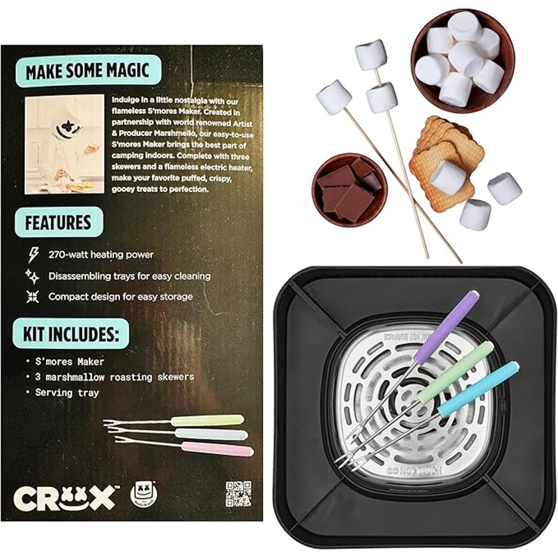 Bring the fun of campfire s’mores indoors with the Crux Tabletop Electric S’mores Maker. This compact and easy-to-use s’mores kit allows you to enjoy gooey, melted marshmallows and perfectly roasted s’mores in the comfort of your own home. With room for up to 3 roasters and 4 trays, it’s perfect for family gatherings, parties, or cozy nights in.