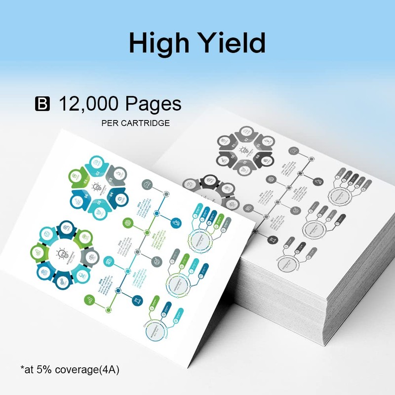 - Estimated Page Yield: Each drum approx 12,000 Pages,based on 5% coverage (Letter/A4)