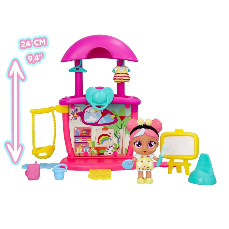 Cry Babies Playtime Day Care Maddy's Playroom Expandable Mini Playset with 14+ Accessories, Maddy Dollhouse Doll, Cries Real Tears for Children 4 to 6 Years