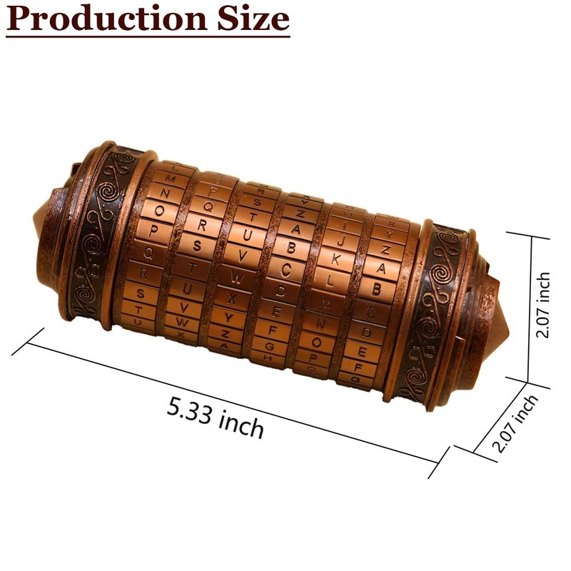 • PREMIUM CRAFTSMANSHIP AND TIMELESS QUALITY: Crafted from high-quality zinc alloy with copper plating,the Da Vinci Cryptex Puzzle Box is heavy, durable and beautifully detailed.It's size: 5.33"L X 2.07"W X 2.07"H; Gross Weight: 1.54 lbs.Its solid construction ensures it can be used repeatedly without damage, making it a long-lasting keepsake and a luxurious puzzle collectible. The intricate carvings and polished finish give it a vintage puzzle box look, perfect for display or as a memorable gift