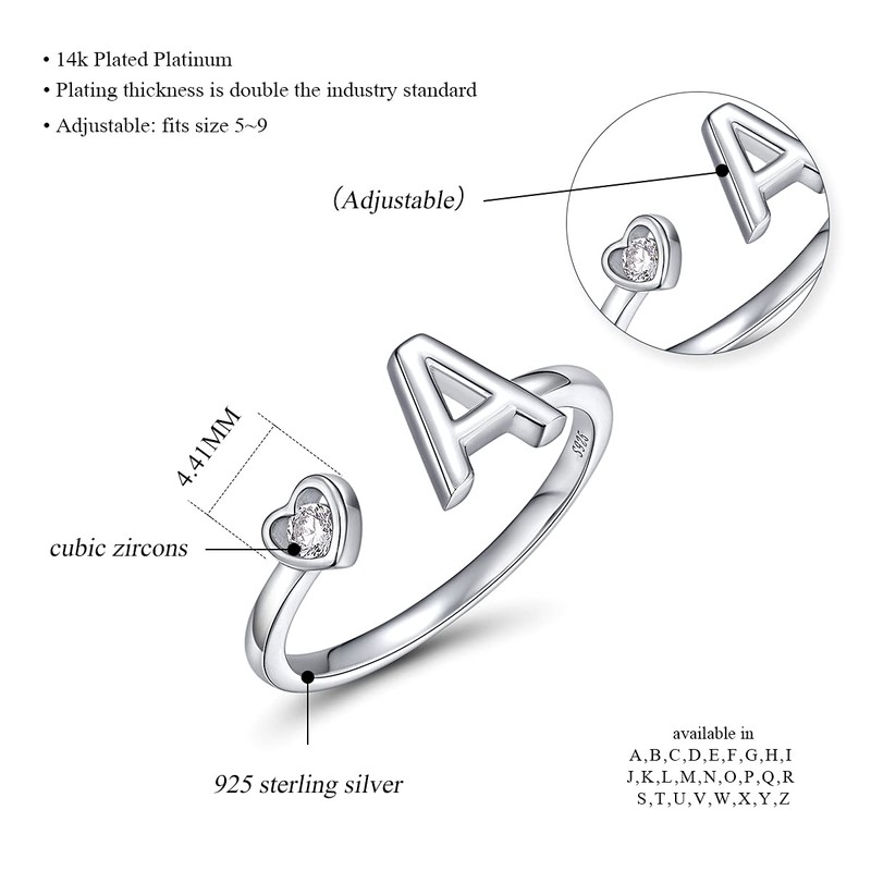 - The rings are made of solid sterling silver, each letter ring is inlaid with AAAAA+ high-quality cubic zirconia stones. This letter ring is the classic and so elegant that people of all ages can enjoy it. It is perfect for daily use and makes you charming and elegant, beautiful and attractive