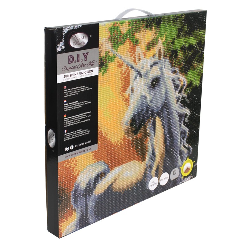 Crystal Art Medium Framed Mounted Wall Art Kit (11.8in x 11.8in) - Sunshine Unicorn - Diamond Painting Kit for ages 8 and up