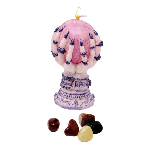 Crystal Ball Candle with Crystal Inside, Witch Hand Crystal Ball, Gothic Candles (Pink)