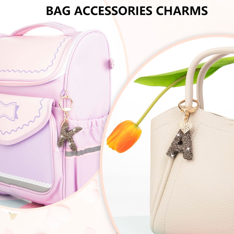 - INITIAL KEYCHAINS FOR WOMEN: Letter keychain have: black/pink/white keychain, which can perfectly match your bag/handbag/wallet/purse/car keys chain/backpack charms.