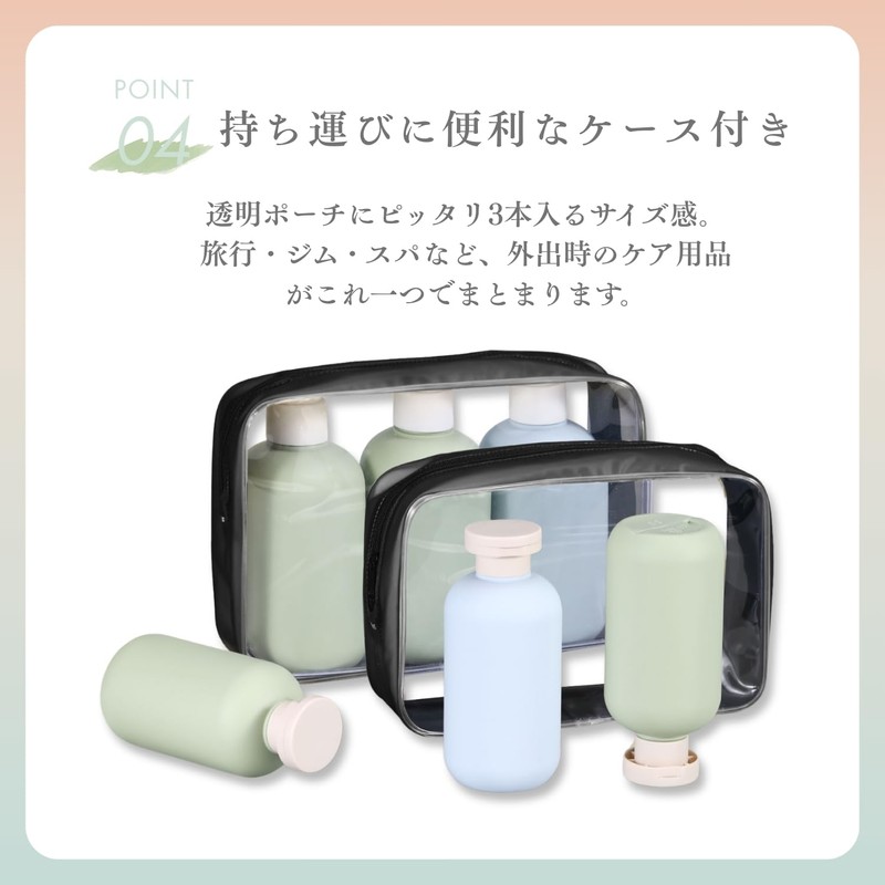 - Includes a dedicated case. Lightweight & Versatile Travel Bottles Set of 3 Travel Bottles with Dedicated Case, perfect for travel or to the gym