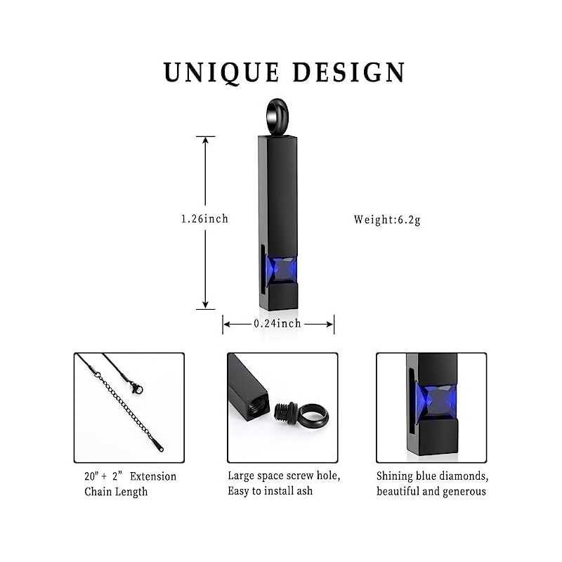 - đăBirthstone Urn Necklaceă: Large space design, You can easily fill ashes inside - It is size-able enough to hold a nice amount of ashes.Urn Pendant Size:0.24"wide * 1.26"high, weight is 0.03lb. Chain length:20"+2"(Chain extension part),the wearing length of the chain can be adjusted at will.