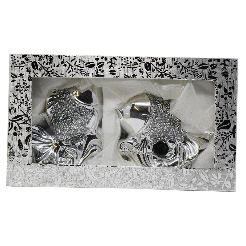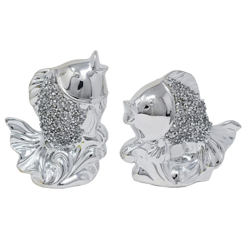 CRYSTAL CROWN® Sparkle Ornament Bling Crushed Diamond Dual Fish Statue Crystal Ceramic Ornament