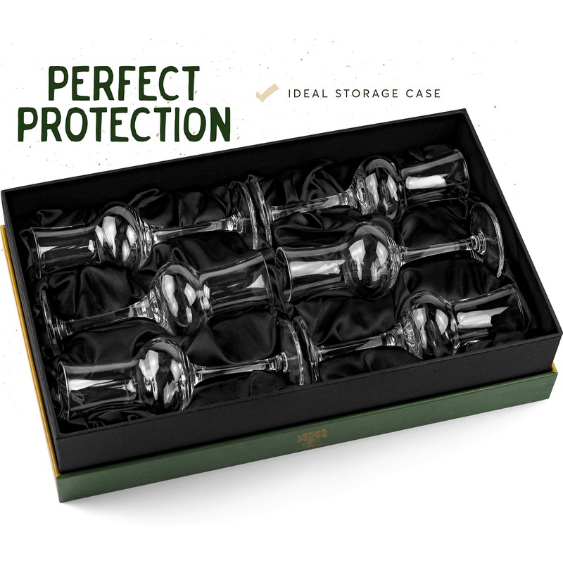 - SOPHISTICATED GIFT – for birthday, housewarming, wedding, engagement, anniversary, retirement, Father’s or Mother’s Day, for your boss, business partner or simply yourself. Every set of 6 grappa brandy glasses comes neatly packed in our exceptional gift and storage box. The back shares a few tips for serving and tasting while the silky glass shape matching cloth carefully secures each snifter in place to protect from dust, scratching and breaking.