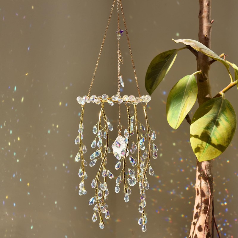 - Quality Construction: Crafted with a sturdy metal frame, iridescent crystal beads that shift with rainbow hues, and a natural raw crystal. Durable and exceptional at reflecting light, creating a magical, constantly changing light show.