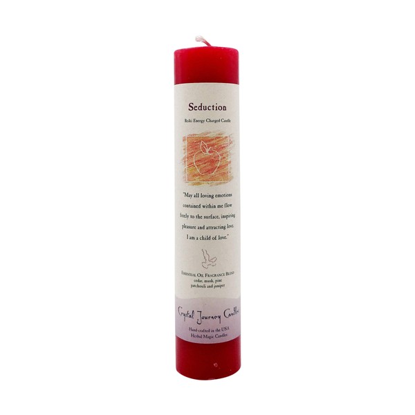 The Seduction Reiki Energy Candle, Handmade By Crystal Journeys, Should Come With A Warning: Use At Your Own Risk. This Seduction Reiki Energy Candle Is Charged With Reiki Energy. Reiki, The Japanese Spiritual And Holistic Therapy Is Extremely Effective. The Reiki Energy Combined With The Special Blend Of Essential Oils In Each Candle To Achieve The Specific Goal As Implied, Is Very Powerful. The Seduction Candle Contains The Following Blend Of Essential Oil Ingredients: Musk, Patchouli, Pine, Cedar And Juniper. Also, Each Crystal Journeys Seduction Reiki Energy Candle Comes With An Affirmation And Inspirational Message, As Do All The Crystal Journeys Candles. If You're Feeling Really Brave, We Recommend You Use The Seduction Candle To Attract A Lusty Relationship. You Can Also Use The Seduction Candle In Combination With The Crystal Journeys Love Candle To Put A Spark Back Into A Tired Relationship.