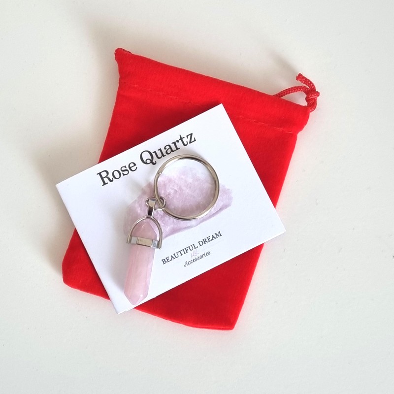 Crystal Keyring - Quartz Pillar Keychain - Amethyst & Rose Quartz Gemstone Charm - Gift for Friends