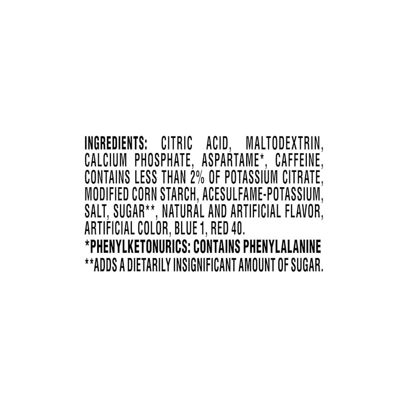 Recharge and beat those afternoon slumps with a caffeine boost from Crystal Light Energy Boost Fruit Punch Powdered Drink Mix. Each powdered fruit punch packet contains 75mg of caffeine and 5 calories per serving, so you can enjoy a vibrant fruity pick-me-up minus all the calories. Our powdered drink mix packets are zero sugar, low calorie and low sodium. Each .09-ounce low-calorie drink mix packet contains 90% fewer calories than leading beverages (per 16 fl oz beverage, this product is 5 calories; leading beverages are 130 calories). To prepare, pour one fruit punch packet into a water bottle or tall glass of water, shake or stir until dissolved, and enjoy. Enjoy a burst of vitality at home or work, or bring our single-serving packets on the go for a refreshing fruit punch flavor energy boost wherever the day takes you. Crystal Light lets you enjoy fruity refreshment from morning to night. Start your day with our Immunity Support, recharge with Energy Boost and relax with Mixology.