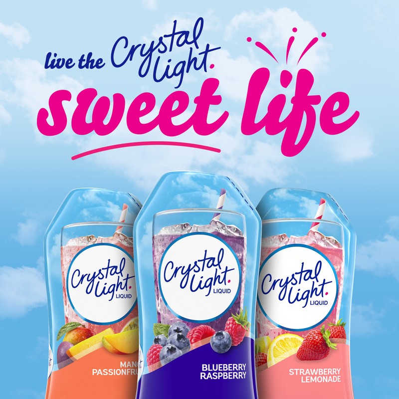 • Crystal Light Liquid Naturally Flavored Blueberry Raspberry Drink Mix is a travel size, resealable bottle of water flavoring drops