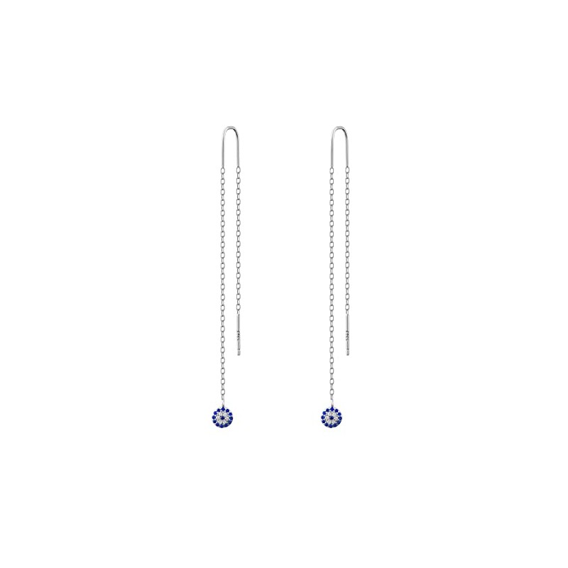 Crystal Pave Evil Eye Riviere Statement Drop Earrings in 925 Sterling Silver, Sterling Silver, Cubic Zirconia