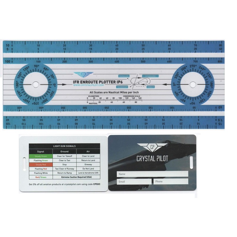 Crystal Pilot IP15 IFR Enroute Plotter, IFR View Limiting Glasses, IFR/VFR Medium Placard, Light Gun Signals Bag Tag