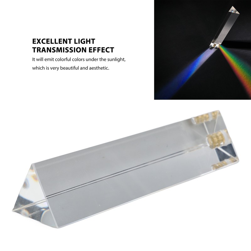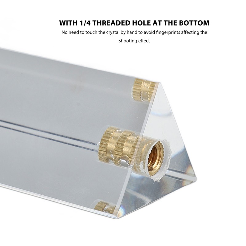 1、Excellent Transparency: Made from advanced glass and stainless steel materials, this crystal prism offers exceptional light transmittance, creating a wonderful display of colors in the sunlight. 2、Dazzling Light Reflection: With its sparkling and transparent appearance, this crystal prism not only reflects surrounding light but also adds unexpected and mesmerizing colors. Perfect for use as an auxiliary photography prop to enhance your shots. 3、Convenient to Use: Equipped with a 1/4 inch thread interface at the bottom, this crystal prism allows you to handle it without touching the crystal directly, preventing fingerprint smudges that may affect the photo quality. 4、Exquisite Craftsmanship: Crafted with precise glass cutting techniques, every detail of this crystal prism is flawlessly perfect. Its size of 130x30x30mm/5.1x1.2x1.2in make it an exquisite work of art. 5、Ideal Gift Choice: Packaged in an attractive gift box, this crystal prism is a perfect and elegant present for occasion like Valentine's Day, Mother's Day, Christmas, and more. Show your appreciation and love with this thoughtfully designed present.