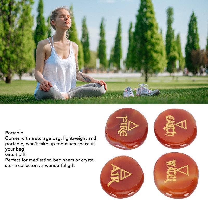 1、Symbolic: Crystal runestone is considered a tool for communicating with the spirits and is used by people during meditation. 2、Oval: Engraved crystal agate is four, oval shaped and perfect for emotional healing, negative energy cleansing. 3、Hand Carved: Oval healing crystal is hand carved, highly polished, exquisitely small and crafted, you will love it. 4、Portable: Engraved crystal agate comes with a storage pouch, lightweight and portable, it won't take up too much space in your bag. 5、Wonderful Gift: Agate rune stones are perfect for meditation beginners or crystal stone collectors, and it is a wonderful gift.