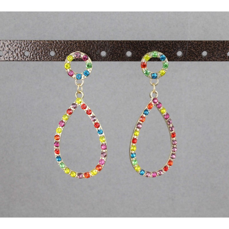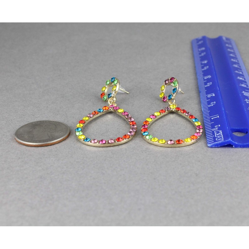 Crystal Teardrop Earrings Post Oval Dangle Earrings Door Knocker Multi Color Crystals 2.25 inches Long