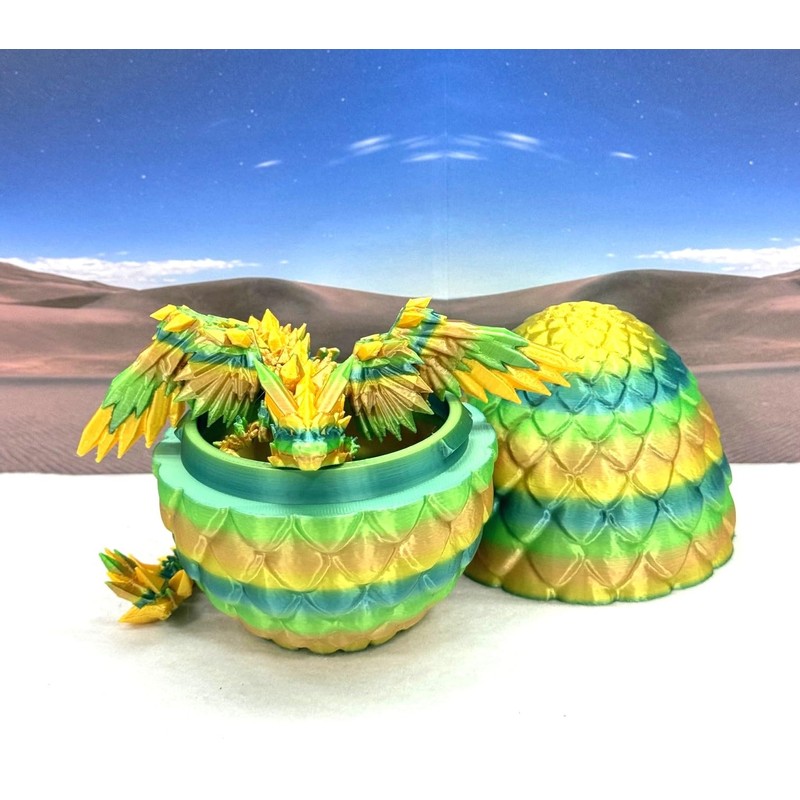 Crystal Winged Dragon with Dragon Egg, 3D Printed Articulated Dragon with Wings, Yellow and Green Crystal Winged Dragon, Fidget ADHD Autism Toy CW007
