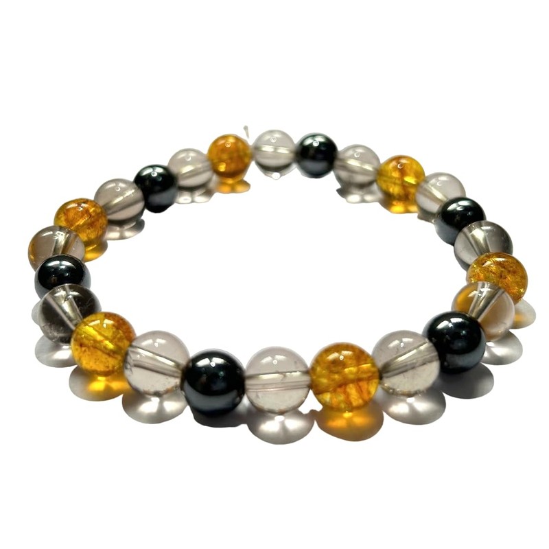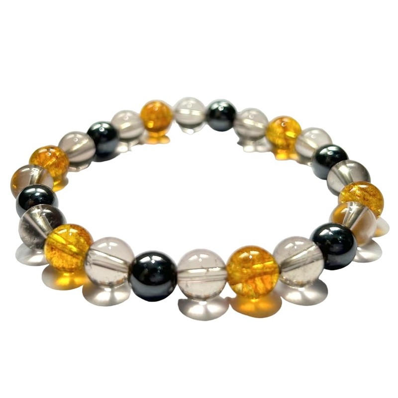 CRYSTALMIRACLE Smokey Quartz Hematite Citrine Triple Round Beaded 8 mm Stretch String Fashion Accessory Men Women Gift