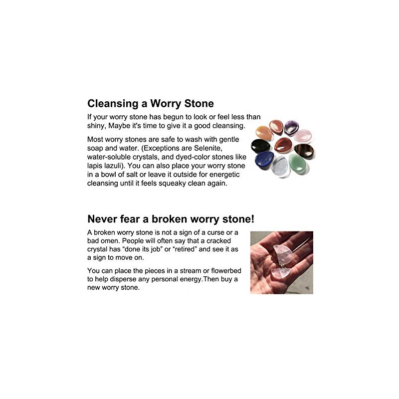 - Worry stones (palm stones, thumb stones) are smooth, polished gemstones, usually in the shape of an oval with a thumb-sized indentation, used for relaxation or anxiety relief. They are used by holding the stone between the index finger and thumb and gently moving one's thumb back and forth across the stone.