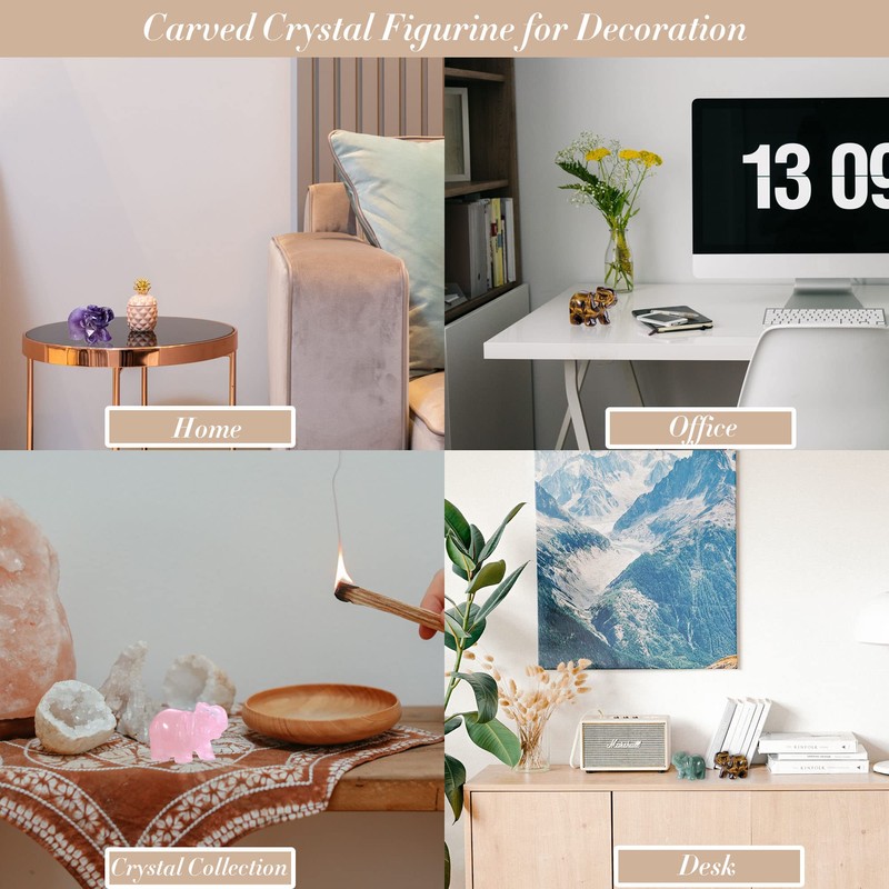 carved little crystal elephants ornament are great for office, home, desk decoration, perfect for crystal gemstone collection, crystal gift for Christmas, birthday, Valentines Day, Mothers Day, brings protection, happiness and good luck to yourself, families, best friends