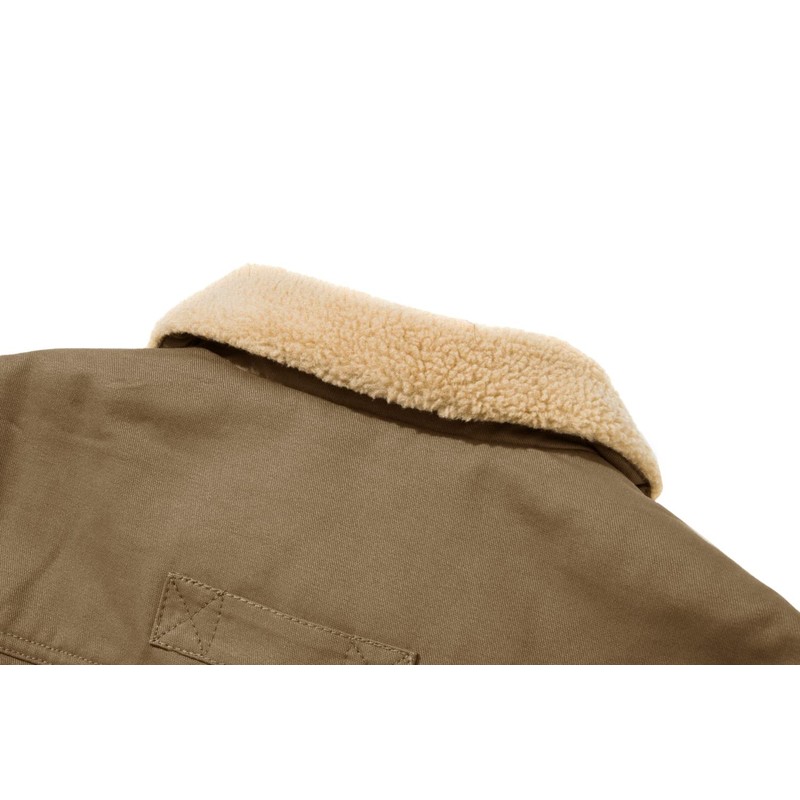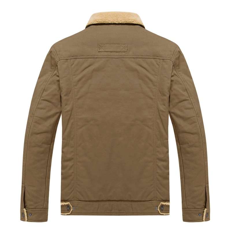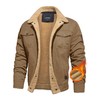 CRYSULLY Men's Thicken Cargo Coat Warm Fur Collar Lightweight Jacket Khaki XL