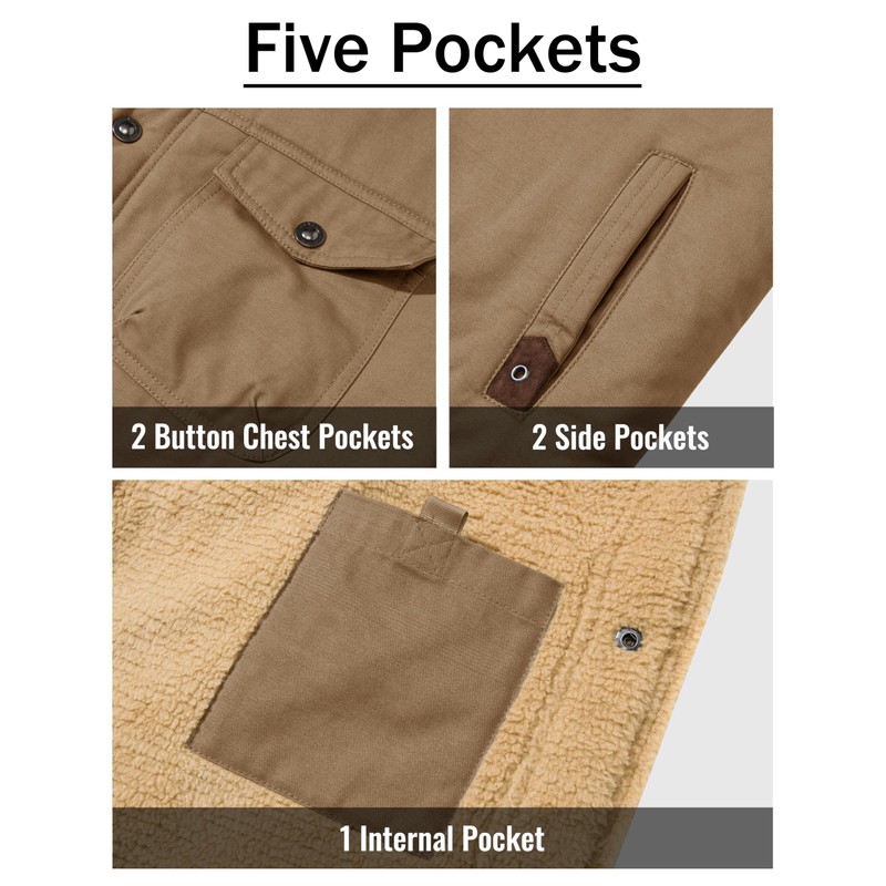 - Multi Pockets: 2 hand pockets, 2 chest pockets, 1 internal pocket with plenty of storage space.