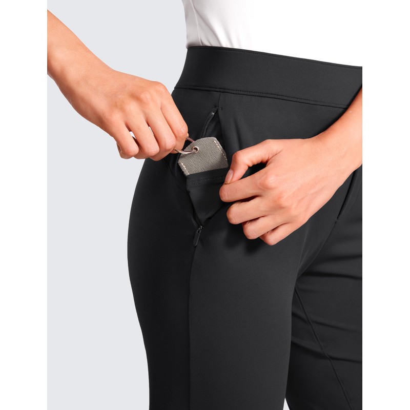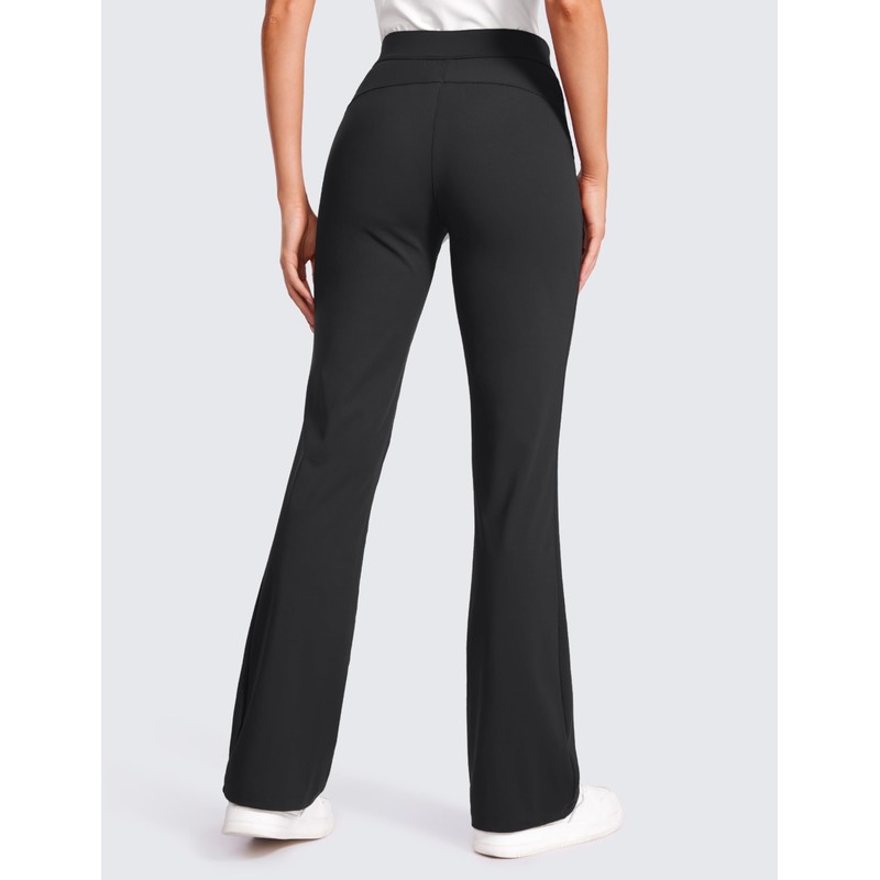 CRZ YOGA 4-Way Stretch Flare Womens Pants Tall 31" Dress Work Casual High Waisted Lounge Sweatpants with Zip Pockets Black X-Small