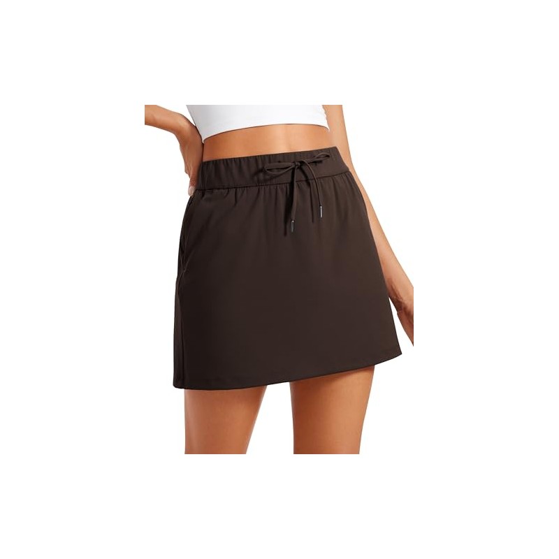 CRZ YOGA 4-Way Stretch Skirts for Women High Waisted Work Casual Golf Tennis Skirt Skorts with 5 Pockets Hot Fudge Brown Small
