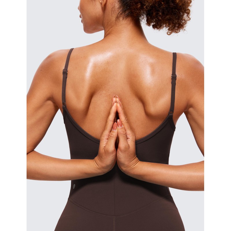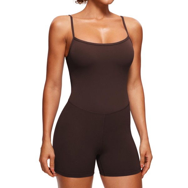 CRZ YOGA Butterluxe Monos Pantalones Cortos Deportivos Bodysuit de Una Pieza para Mujer con Tirantes Ajustables para Entrenamiento Marrón Fudge Caliente Mediano